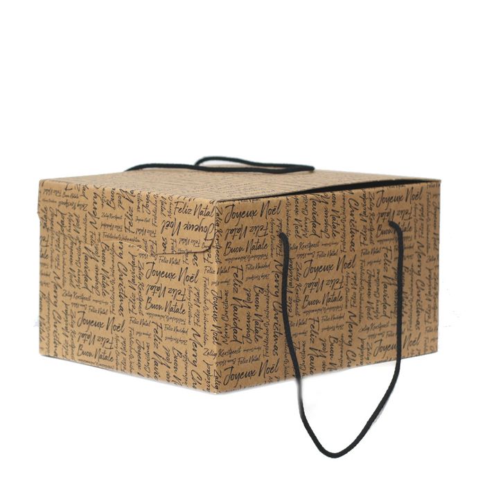BROWN SCRIPT BOX WITH ROPE HANDLE 29(L) x 35.5(W) x19.5(H)cm