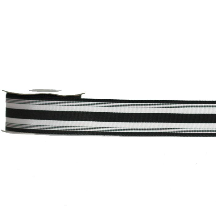 GROSGRAIN 38mm x 9Mtr BLACK/WHITE STRIPES (WIRED)
