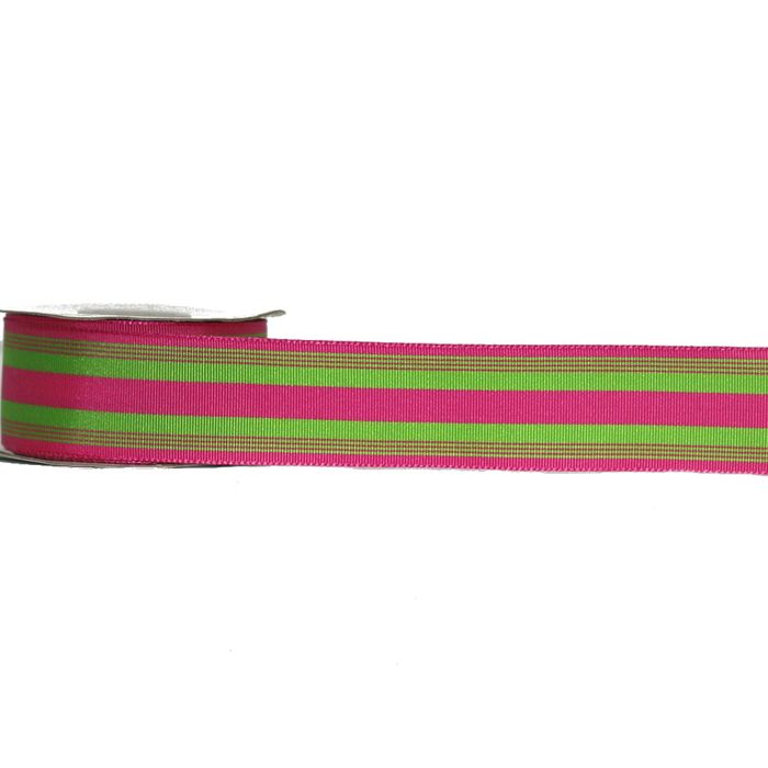 GROSGRAIN 38mm x 9Mtr PINK/LIME STRIPES (WIRED)
