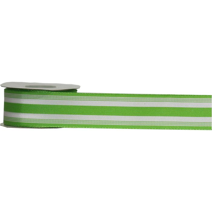 GROSGRAIN 38mm x 9Mtr LIME/WHITE STRIPES (WIRED)