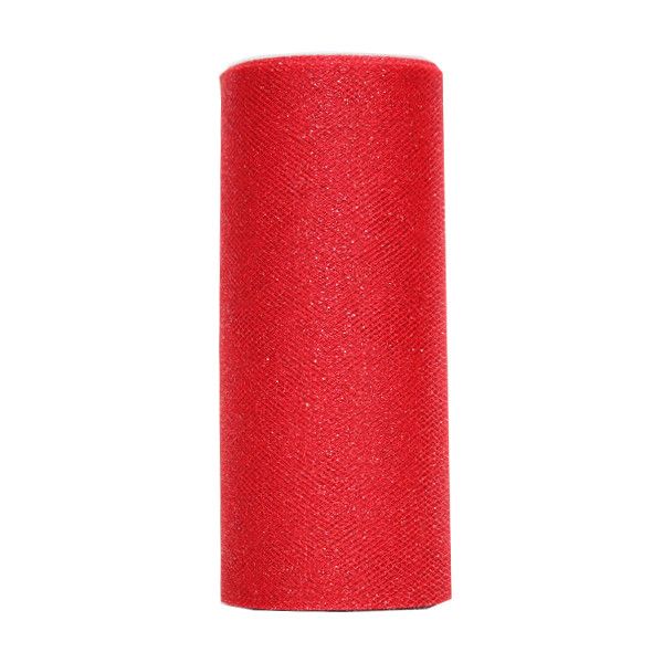 TULLE GLITTER 150mm x 25Mtr RED