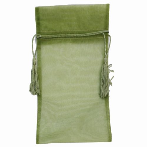 POUCH ORGANZA TASSEL LARGE 25(H) x 15(W)cm OLIVE GREEN(10/PK