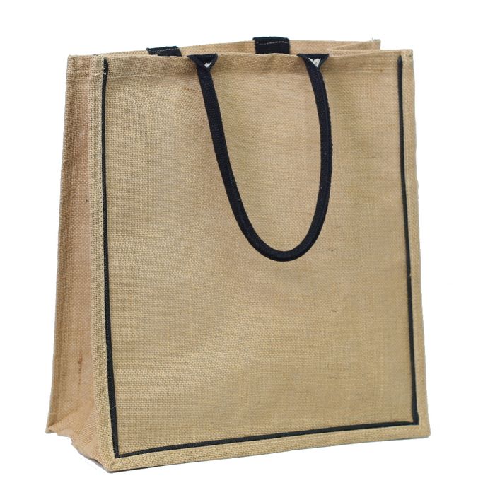JUTE SHOPPING BAG WITH BLACK HANDLE 43(H) x 40(W) x 21(G) cm
