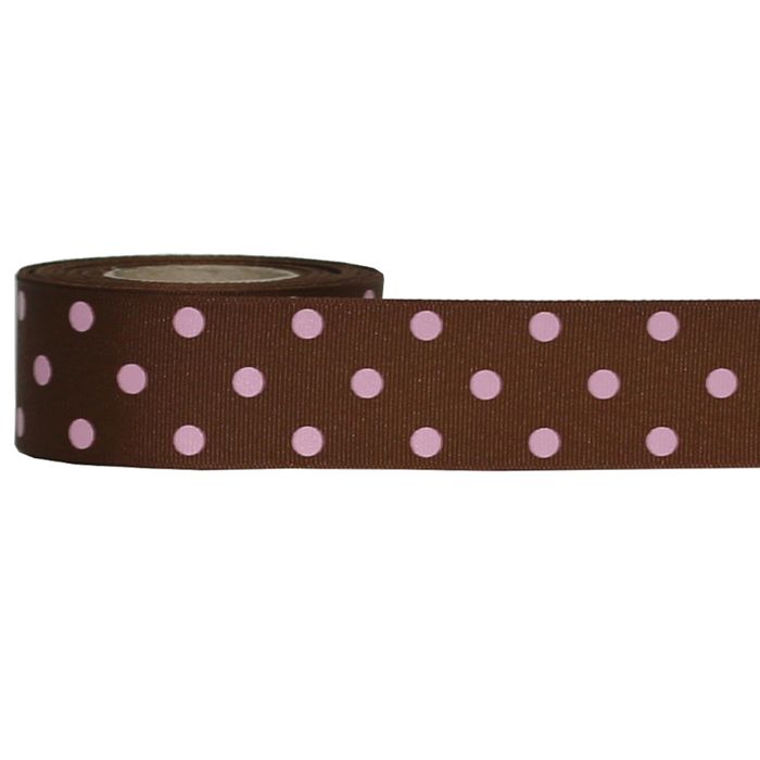 - DIPPITY DOT (GROSGRAIN) 38mm x 9Mtr BROWN/PINK DOT - BUY1GET