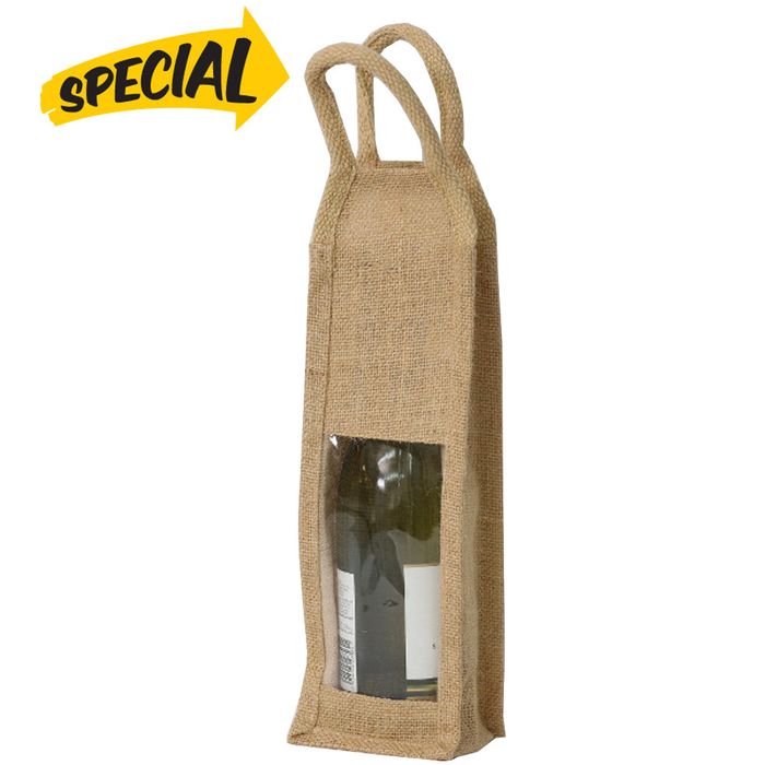 - JUTE BAG 1 BOTTLE WITH CLEAR PANEL (MIN.BUY 10)