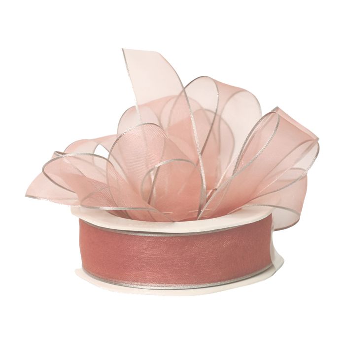 ORGANZA SILVER EDGE 25mm x 20Mtr DUSKY PINK