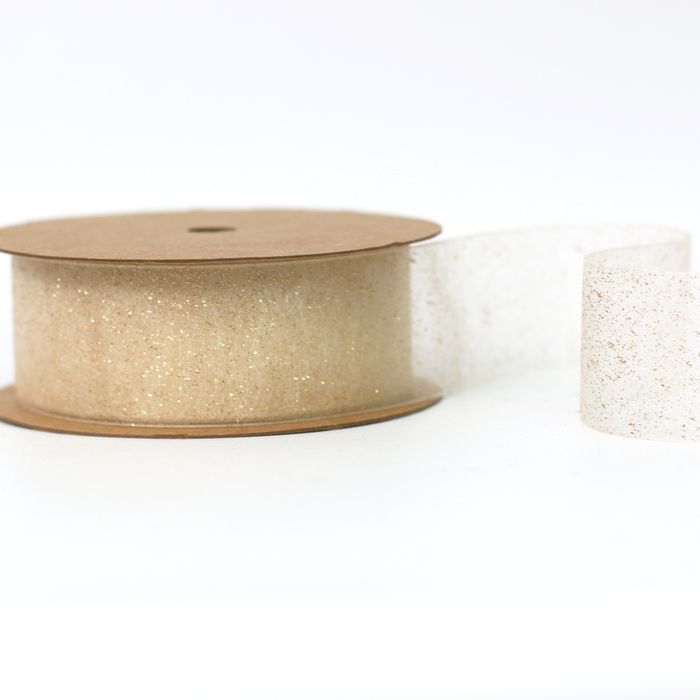 - WOVEN EDGE GLITTER RIBBON 38mm x 20Mtr GOLD