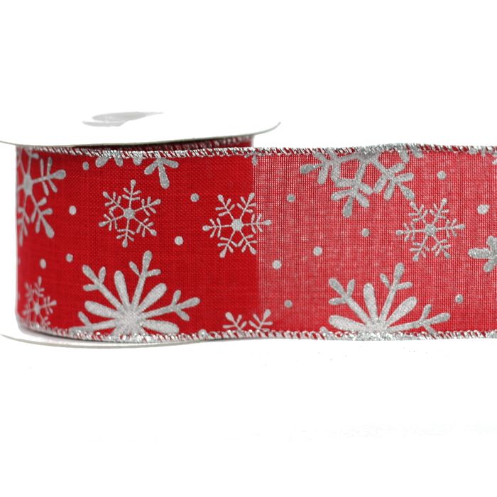 SNOWFLAKE 64mm x 9Mtr RED / SILVER (WIRED) -NO RETURNS