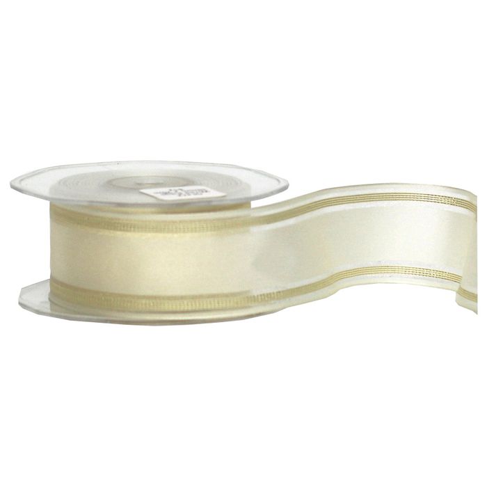 - SATIN GOLD EDGE RIBBON 38mm x 20Mtr IVORY/GOLD (WIRED)