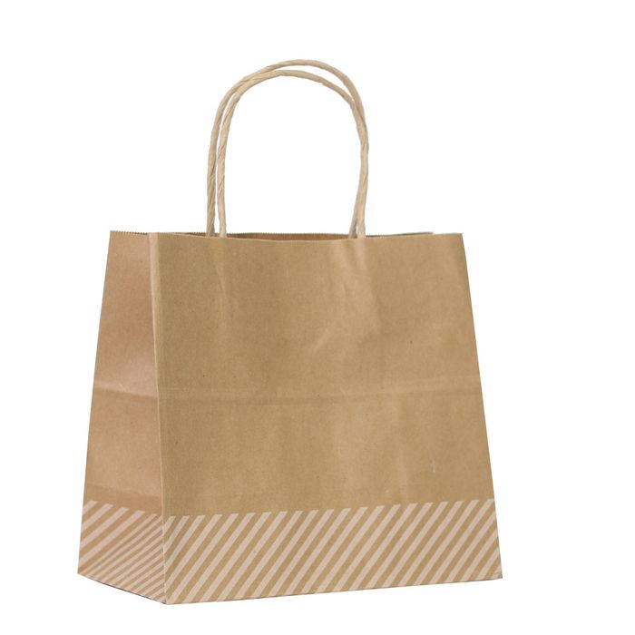- KRAFT BAG BROWN OBLIQUE STRIPE WHITE SML 19Hx21Wx11Gcm-400/C
