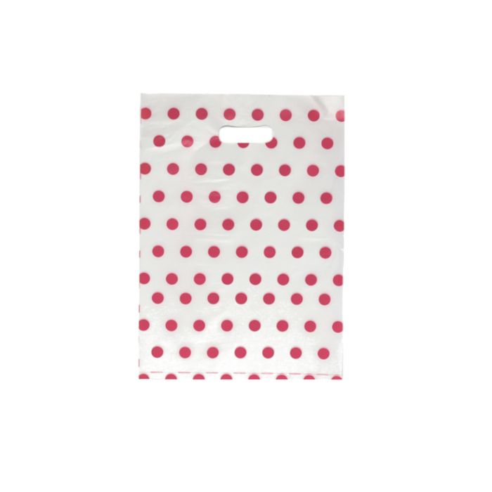 - DIECUT BAG SML 36(H) x 25.5(W) cm WHITE/PINK DOT (100/PK