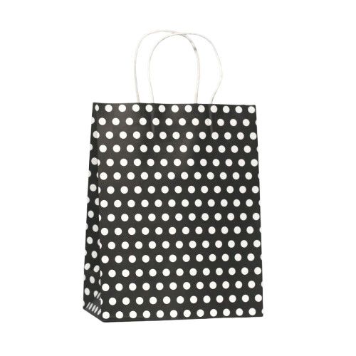 - KRAFT BAG BLACK / WHITE DOT MEDIUM 27H x 21W x 11G cm -10/PK