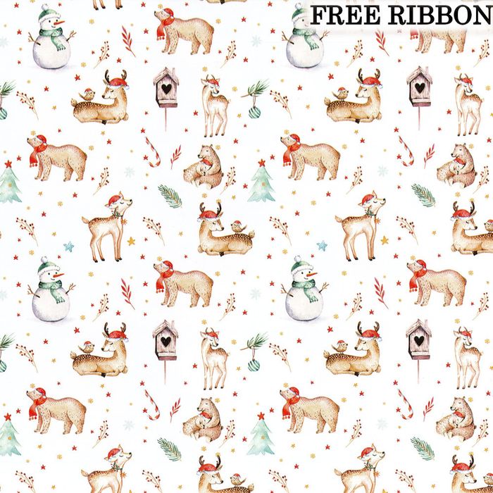 Very classic European paper with wintery scene of snowmen,deer,polar beers and robins!