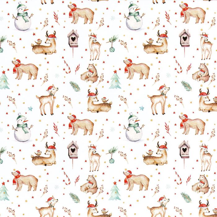 Classic European paper with winter scenes of snowman, deers, polar bears and robin birds.