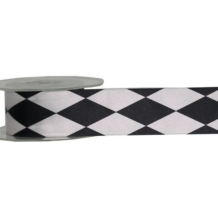 - HARLEQUIN (SATIN) 38mm x 10Mtr BLACK/WHITE
