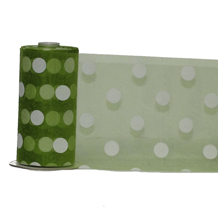 DEBBIE DOT ORGANZA 150mm x 23Mtr LIME/WHITE DOT