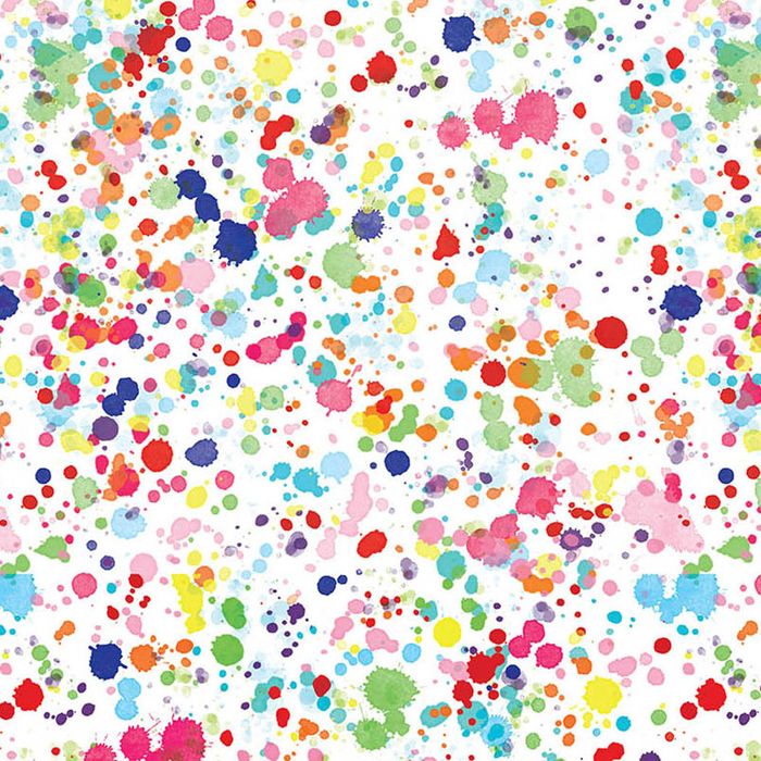 Fun paint like splatters on a white gloss paper.Looks great with lots of different coloured ribbons either curling or organzas!! * SPECIALS- ROLLED INSIDE OUT.NO ISSUES WITH THE DESIGN.